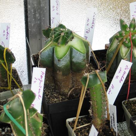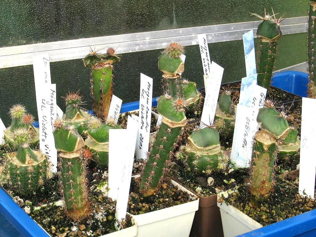 Bei den Folgepfropfungen habe ich die Unterlagen von Harissa jusbertii, EP.-H. Johnsons Greengold, Maas gelb und Violetta